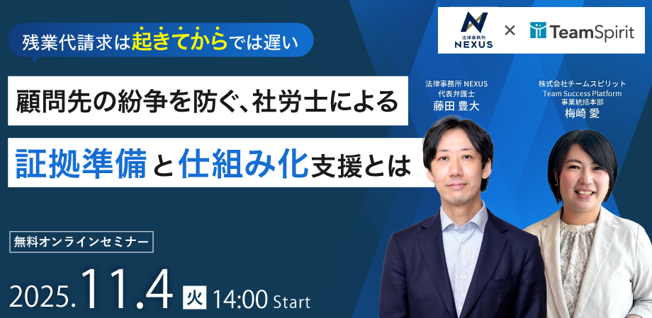 2025.10.27 お知らせ【11/4セミナー開催】 残業代請求は“起きてから”では遅い ~顧問先の紛争を防ぐ、社労士による“証拠準備”と“仕組み化”支援とは ~ -