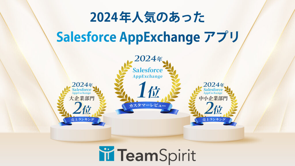 2025.03.11 お知らせ2024年人気のあったSalesforce AppExchageアプリランキングで、チームスピリットが「カスタマーレビュー」1位、中小企業部門、大企業部門で売上2位‐総合5部門すべてにランクイン‐