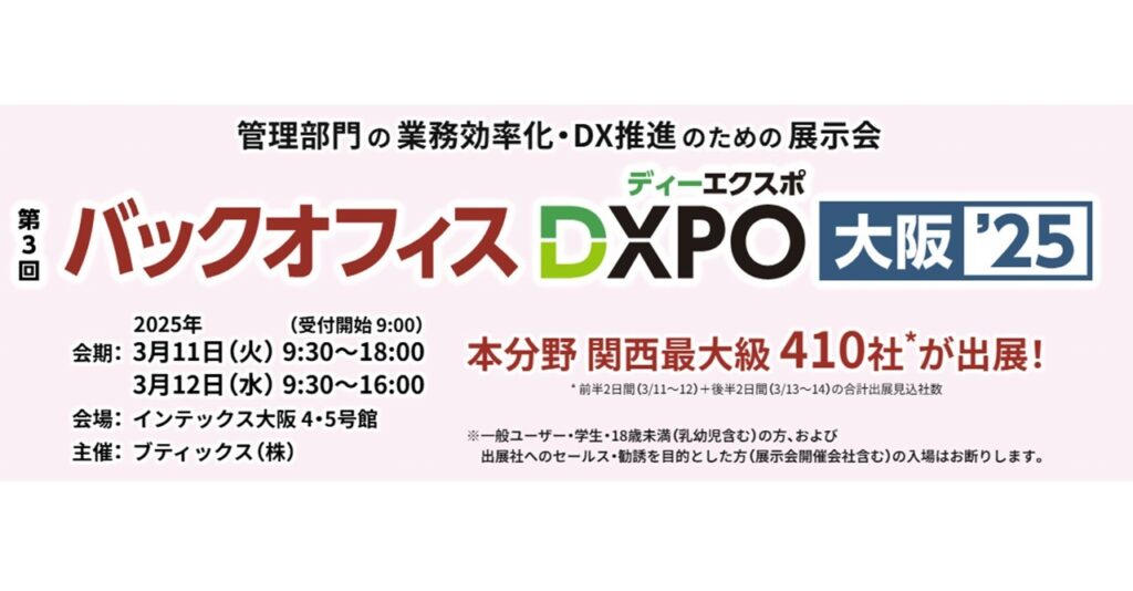 2025.03.06 お知らせ第3回バックオフィスDXPO大阪‘25に出展いたします