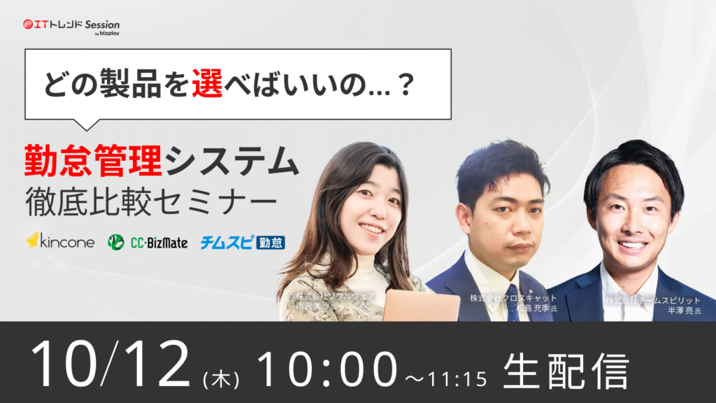 2023年10月12日(木)に開催される「忖度なし!勤怠管理システム徹底比較セミナー(Innovation&Co.主催)」に登壇いたします。