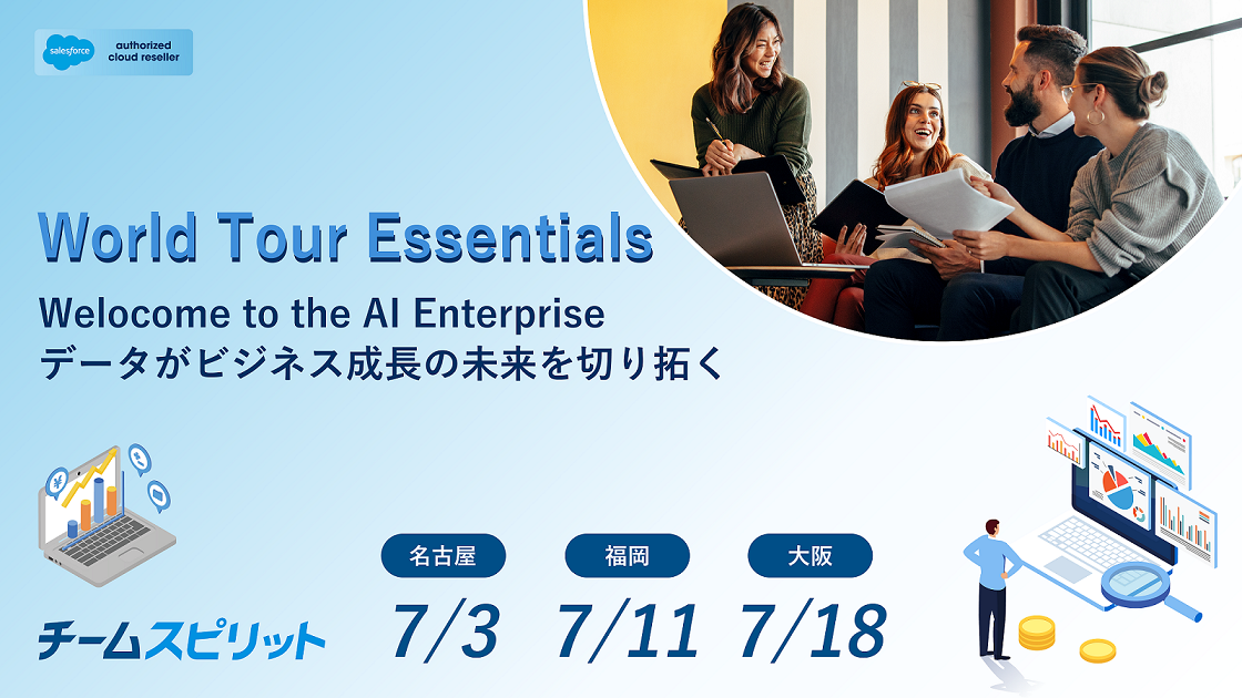 この度チームスピリットは、セールスフォース・ジャパン社が主催する「World Tour Essentials」の名古屋・福岡・大阪3都市に出展いたします。