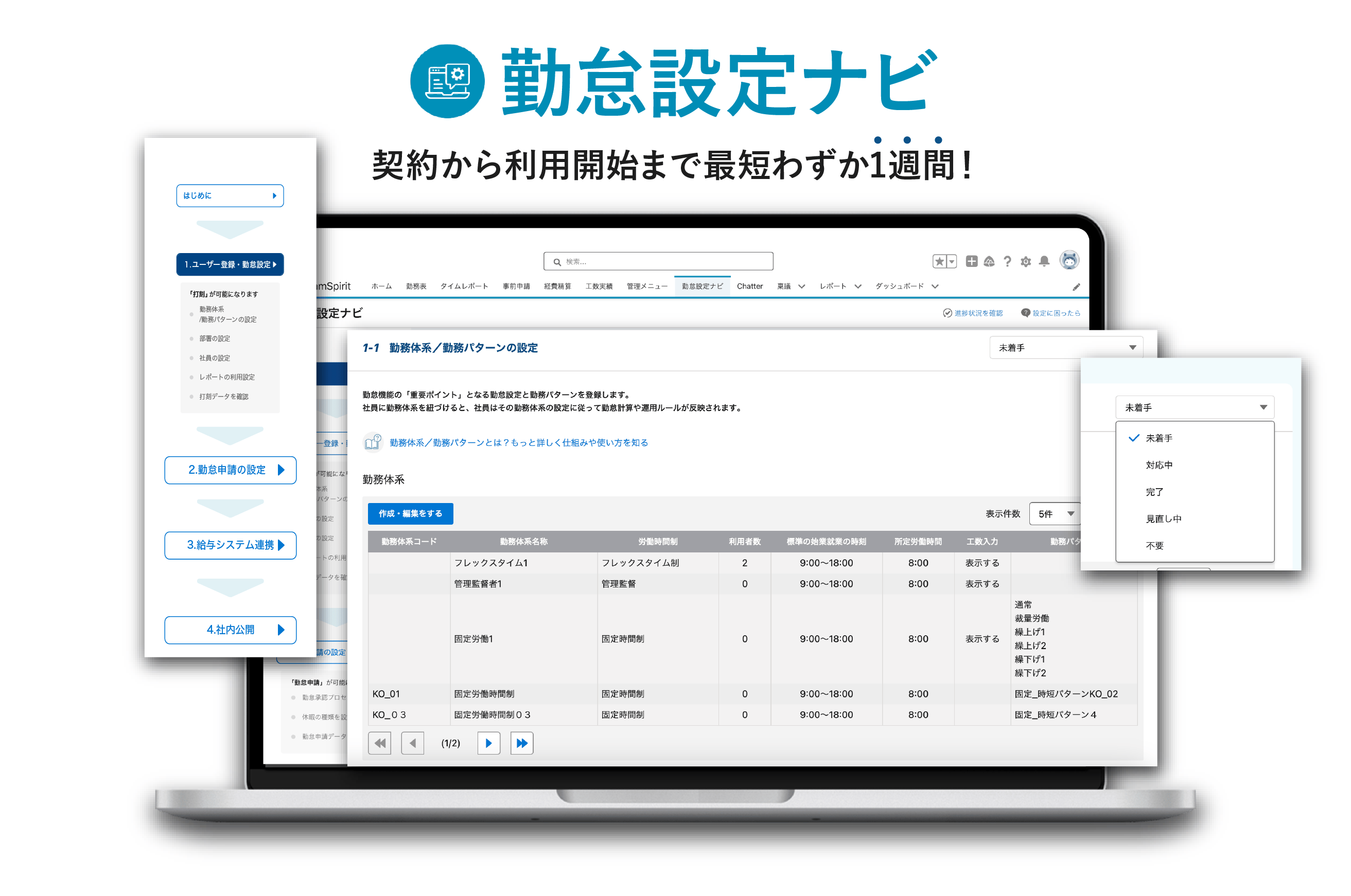 この新機能により、人事・労務担当者の皆様が通常業務と並行して、勤怠管理システムの「導入から運用開始までを約1週間」で実現できるようになりました。