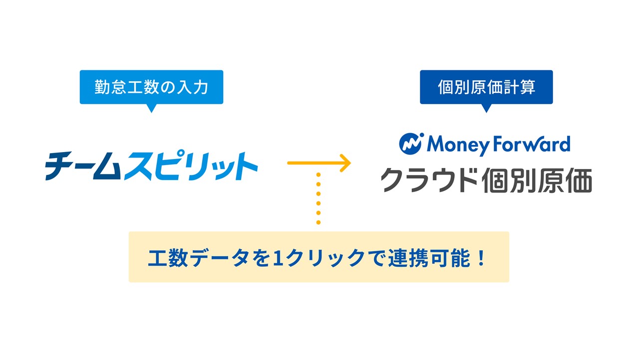今回の連携により、「チームスピリット」に蓄積された工数データをワンクリックで「マネーフォワード クラウド個別原価」に自動インポートできるようになりました。これにより、両サービスを利用するユーザーは「チームスピリット」に入力された工数データを容易に取り込み、「マネーフォワード クラウド個別原価」で労務費計算や間接費の配賦が可能です。