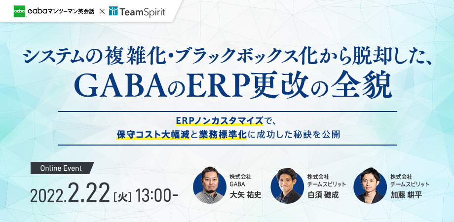 2022.02.18 お知らせ【2/22:セミナー開催のお知らせ】システムの複雑化・ブラックボックス化から脱却した、GABAのERP更改の全貌
