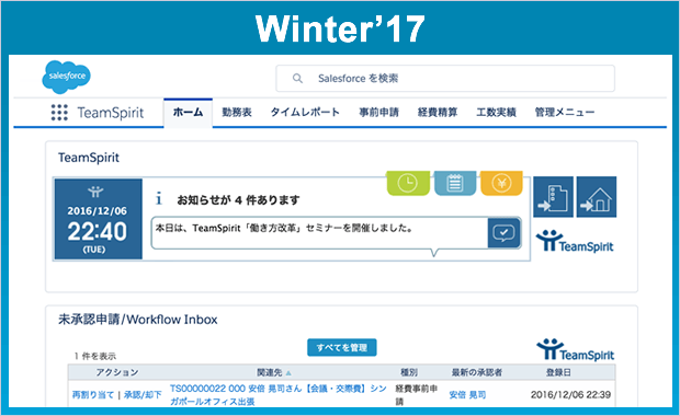 2016.12.08 お知らせ「TeamSpirit」がSalesforce Lightning Experienceに対応〜 Winter’17をリリース〜