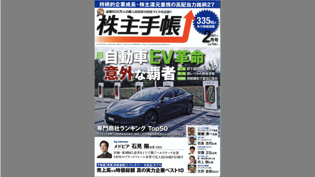 2021.01.16 メディア掲載『株主手帳 2021年2月号』に弊社代表荻島のインタビューが掲載されました。