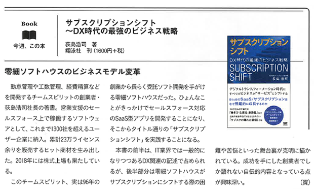 2020.02.25 メディア掲載週刊BCNに弊社荻島の書籍「サブスクリプションシフト」の書評が掲載されました
