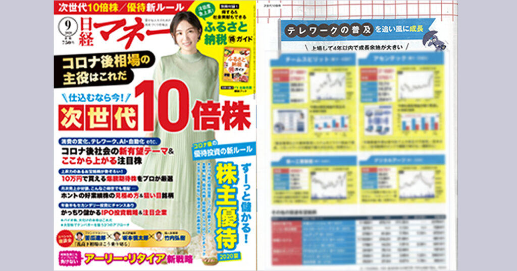 2020.07.27 メディア掲載7月21日発売の「日経マネー 2020年9月号」にて、チームスピリットが紹介されました。