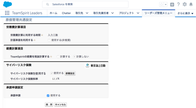 「TeamSpirit Leaders」の利用によって、プロジェクトリスク保険の加入プロセスが効率化されるため、その分保険料が割安になります。さらに保険料をプロジェクト毎に原価として織り込める機能が付加され、保険料コストを内部管理することも可能となりました。