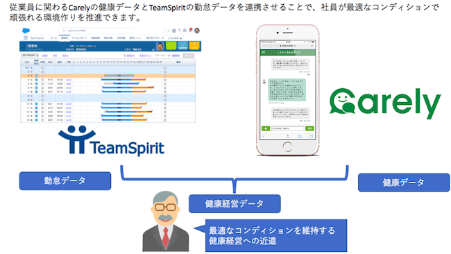 株式会社チームスピリット(本社:東京都中央区、代表取締役社長:荻島 浩司、以下チームスピリット)は、株式会社iCARE(本社:東京都渋谷区、代表取締役CEO:山田洋太、以下iCARE)の提供する、働く人のオンライン保健室「Carely」を導入し、TeamSpiritの勤怠データをiCAREのメディカルスタッフと産業医のサポートに活用することで、従業員の健康保持と増進、健康経営に役立てる取り組みを開始しました。