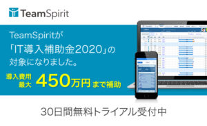 株式会社チームスピリット(代表取締役社長:荻島 浩司、 以下 チームスピリット)は、自社が開発・提供する働き方改革プラットフォーム「TeamSpirit」が経済産業省が推進する「サービス等生産性向上IT導入支援事業(以下、IT導入補助金2020)」の認定ITツールとして採択されたことをお知らせいたします。