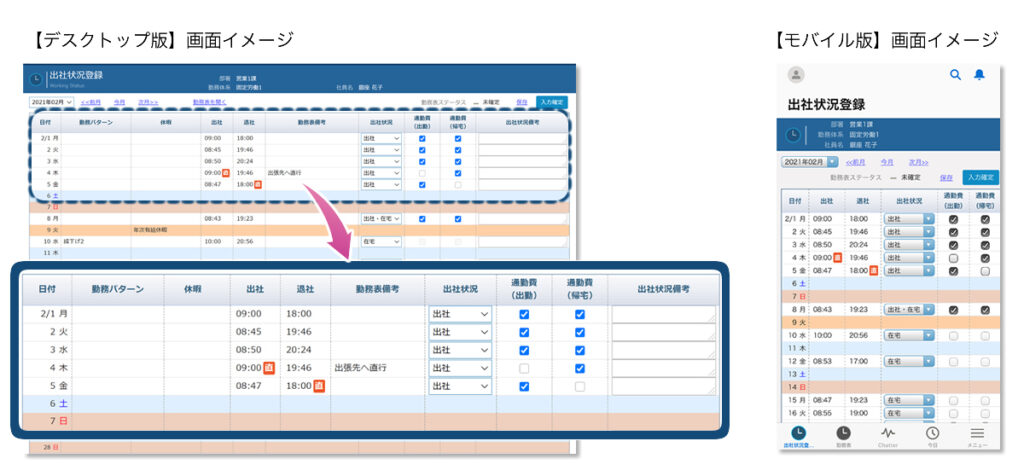 2020年11月下旬にご提供を開始した、出社状況登録機能を強化するためのアップデートを行いました。TeamSpiritのお客様は、本パッケージをご利用いただくことで、モバイルでの操作や管理者による代理入力などができるようになります。
