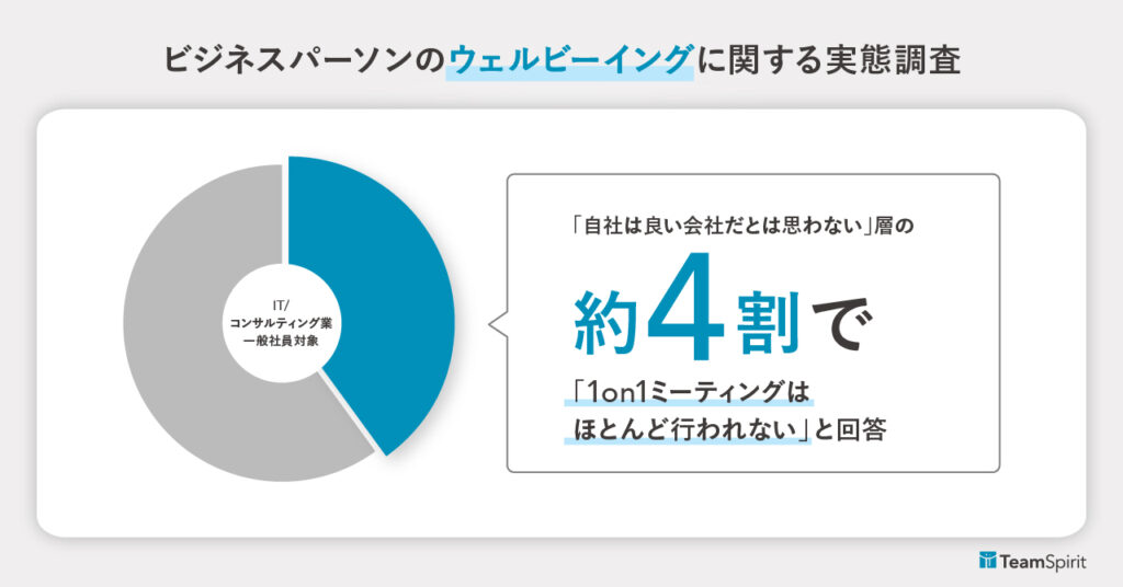 また、現在勤めている会社に納得感を持って働いている(良い会社で働けていると思っている)層とそうではない層との比較により、納得感を持って働いている層ほど1on1ミーティングを高頻度で行っている傾向が分かり、またウェルビーイングを高めるための上司の行動・態度では、「傾聴」「目標達成サポート」「前向き」と、1on1ミーティングとの親和性が高く、ウェルビーイング経営を進める企業に役立つ結果が得られたと考えています。