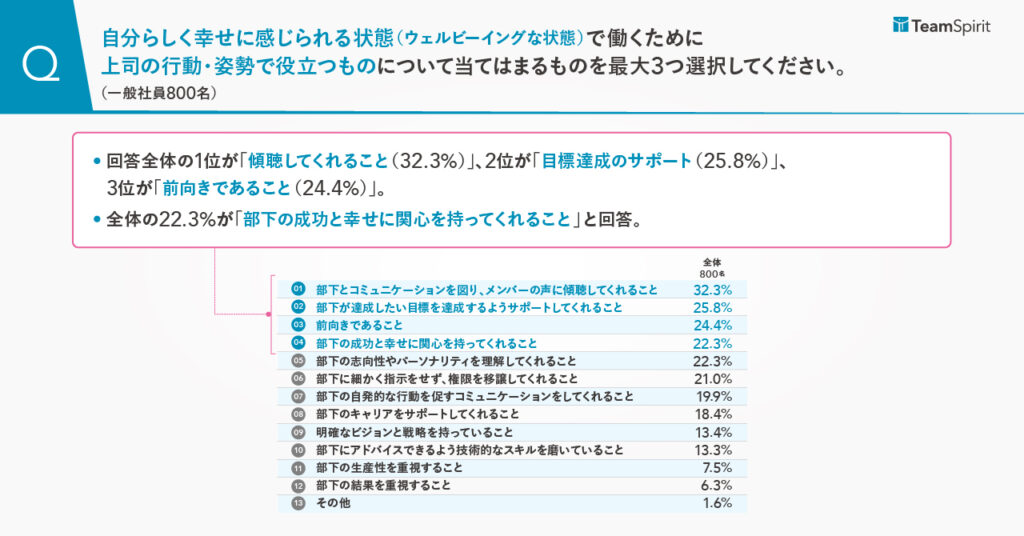 ~ウェルビーイングな状態で働くために上司に期待する行動・姿勢 ベスト3は「傾聴」「目標達成サポート」「前向き」~