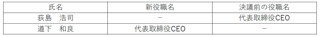 株式会社チームスピリット(東京都千代田区)は、2023年11月27日開催の第27期定時株主総会及び取締役会の決議に基づき、本日付で道下和良が代表取締役CEOに就任したことをお知らせいたします。なお、前代表取締役CEOの荻島浩司は同日付で退任となります。
