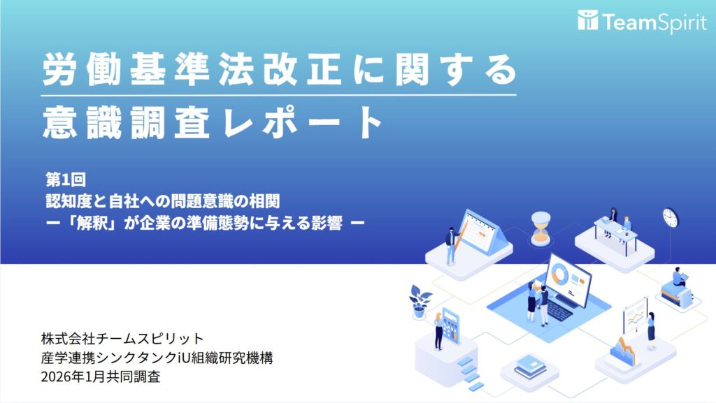 チーム力の最大化の観点から、人的資本の生産性向上を実現する統合型クラウドサービス Team Success Platform「TeamSpirit」を提供する株式会社チームスピリット(本社:東京都千代田区、代表取締役CEO:道下和良、以下チームスピリット)は、産学連携シンクタンクiU組織研究機構(東京都新宿区、代表理事:松井勇策)と共同で、2027年以降の施行を目指して検討されている「労働基準法改正」に関する意識調査を実施しました。