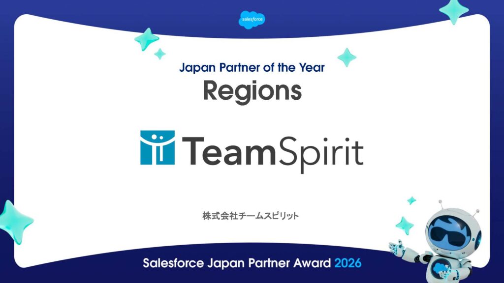 株式会社チームスピリット(本社:東京都千代田区、代表取締役CEO:道下和良、以下チームスピリット)は、Salesforce Japan Partner Award 2026における 「Japan Partner of the Year – Manufacturing -」および「Japan Partner of the Year – Regions -」の2部門を受賞しました。
