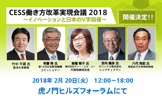 2018.06.11 プレスリリースチームスピリット代表 荻島が、 一般社団法人 働き方改革コンソーシアム(CESS)主催、 「デジタルイノベーション実現会議2018」 に登壇します! 〜タレントマネジメントとイノベーションについて 竹中平蔵氏らとディスカッション〜